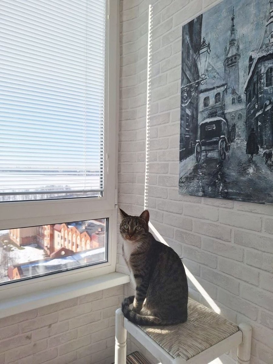 в Арт-кафе «СОК» напротив Третьяковки. Он просто прислал свежие фото, как она висит у него дома, и я, сидя в электричке, рассматривала их и улыбалась. Представьте: вы отдаёте работу, а через три года она всё ещё ловит утреннее солнце из окна, и рядом с ней сидит полосатый кот, который явно считает эту зимнюю улочку своей территорией. Я тогда перед презентацией так нервничала, что чуть не перепутала названия картин, когда рассказывала про акрил и текстурную пасту, которые делают этот старый город почти живым и холодным одновременно. Пришли друзья, коллеги-художники и совершенно случайные люди, которые заглянули на кофе и остались до вечера. А Рома просто подошёл позже, долго смотрел и сказал «беру». Сейчас, глядя на эти фото, я ловлю себя на мысли, что картины действительно не заканчиваются, когда вы ставите последнюю точку мастихином. Они переезжают в чужие дома, продолжают жить своей жизнью и иногда присылают вам такой вот тихий привет из прошлого. И это, честно, одно из самых тёплы