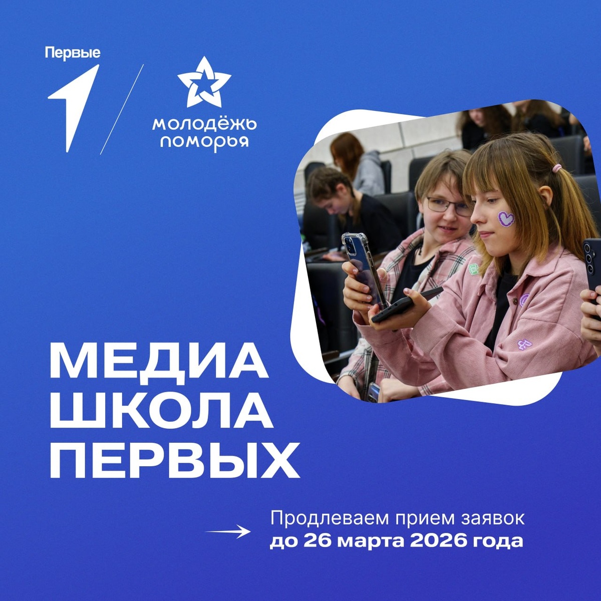 Регистрация на «Медиашколу Первых» продлена до 26 марта 2026 года по ссылке. ✅ 30–31 марта 2026 года собираем самых активных в Архангельске: два дня интенсивной работы, крутые спикеры, море практики и классная атмосфера. Не откладывай — стань частью команды юных медийщиков региона вместе с национальным проектом «Молодёжь и дети». #молод29 #нацпроекты #молодёжьидети #Росмолодёжь #ДвижениеПервых #ДвижениеПервых29