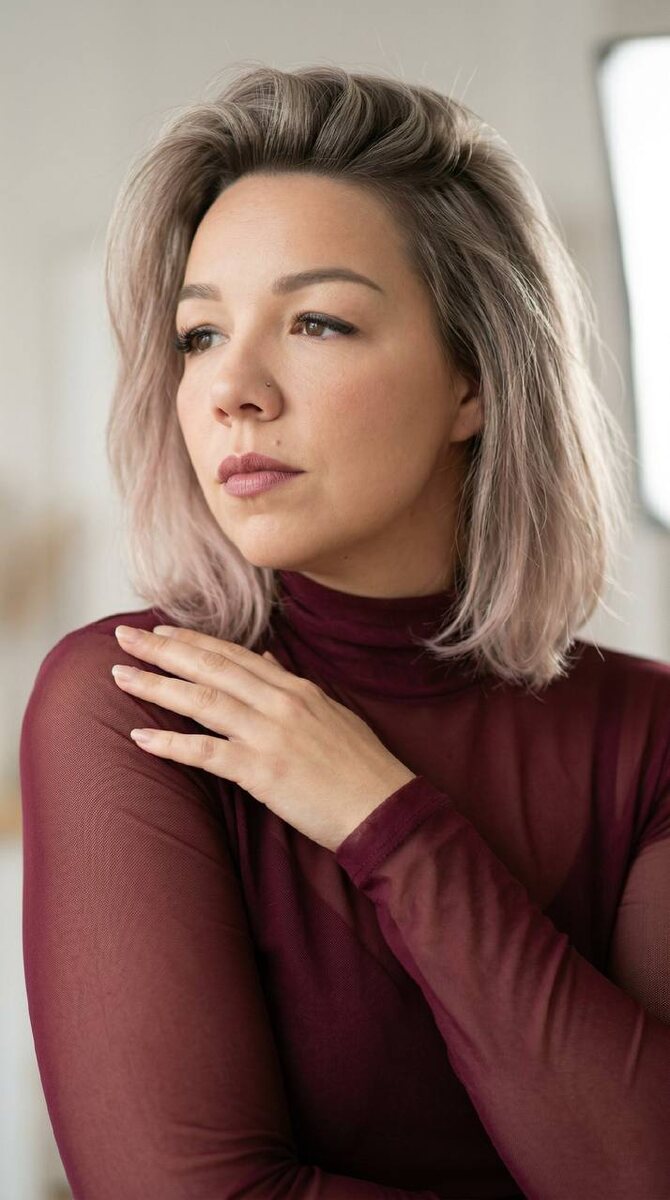 1️⃣Переходим на удобный сервис для генерации: 👉 Syntx Ai 👉 Veo3 2️⃣Выбираем дизайн ИИ/создать картинку 3️⃣Nano banana pro🍌 4️⃣Загружаем свое фото и промпт 📌ВИДЕОИНСТРУКЦИЯ ПО ИСПОЛЬЗОВАНИЮ В ЗАКРЕПЛЕННЫХ СООБЩЕНИЯХ 👍👍👍👍👍👍 ⚠️ПОДПИШИСЬ НА РЕЗЕРВНЫЕ КАНАЛЫ 👇 📱 канал в ВК 📱 канал в МАХ ◾️ПРОМПТ : создай изображение,максимально сохрани мою внешность и черты лица формат 9:16, максимальный реализм; крупный портрет от середины груди до макушки на мягком светлом фоне. Корпус развёрнут на 3/4 влево, плечи опущены; голова слегка повернута влево и чуть приподнята, взгляд вдаль мимо камеры; спокойная уверенная мимика. Правая ладонь лежит на левом плече, пальцы вытянуты; полупрозрачный рукав мягко драпируется. Фигура стройная, длинная шея, аккуратные ключицы. Волосы короткие цветом как на фото, но густые, с объемом у Корней . Одежда: бордовый полупрозрачный топ‑сетка с высоким горлом и удлинёнными манжетами. Ровный тон кожи. Безупречный макияж. Снято на полнокадровую беззер