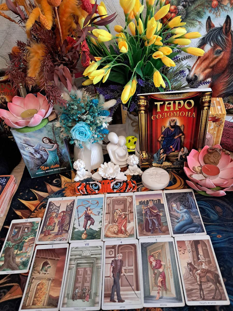 Здесь двери не просто открываются или закрываются — здесь меняется сама структура вашей жизни. Итоговая 10 Пентаклей говорит о том, что после всех этих переходов вы окажетесь в состоянии прочной родовой опоры, материальной стабильности и эмоциональной укорененности, которую Рыбы часто ищут всю жизнь.