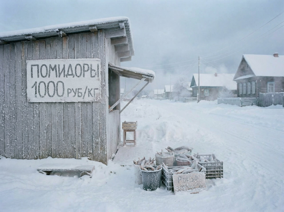 Восемь месяцев в году тут белое безмолвие. Снег лежит слоями, как геологические эпохи. Ветер гуляет так, что звук его похож на чужую речь. Сетевые магазины сюда не едут. Логистика съедает всю прибыль раньше, чем товар доберётся до прилавка. Доставка груза стоит дороже, чем сам груз. Поэтому цены такие, что столичный житель схватился бы за сердце.