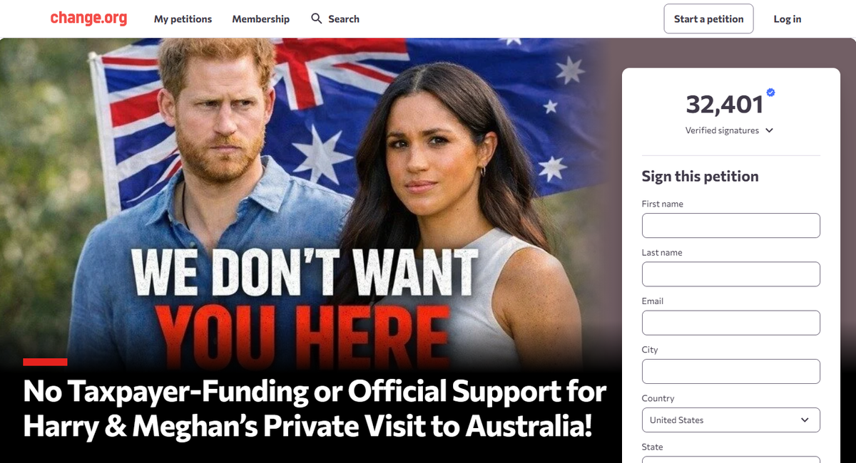 СМИ намекают: австралийские налогоплательщики. Официальные органы Австралии либо открещиваются, либо отвечают весьма двусмысленно... А тем временем более 32 тысяч подписей набрала петиция австралийцев против предоставления Гарри и Меган охраны и иных преимуществ за счет налогоплательщиков Австралии. Поездка принца Гарри и Меган Маркл в Австралию, в рамках которой они в середине апреля посетят (неизвестно, вместе или по отдельности, возможно, каждый поедет в своем направлении, на свое мероприятие) Сидней и Мельбурн, вызывает массу вопросов и один из главных: охрана сиятельных тушек. Никто в Австралии пока не готов сказать, кто будет отвечать за безопасность пары и кто за это заплатит. ДМ: "Федеральное правительство и власти штатов Австралии отказались сообщить, кто будет обеспечивать безопасность герцога и герцогини Сассекских во время их частных визитов в Сидней и Мельбурн с 15 по 19 апреля. Несколько агентств дистанцировались от обеспечения безопасности Сассексов во время этой поездк