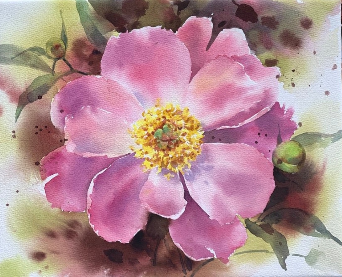 Не в прямом смысле, конечно. А как бы передать его на картине. Чтобы зритель смотрел на нарисованный цветок и в его голове появлялся конкретный аромат и разливался вокруг. А я вам расскажу)) Это становится возможным благодаря суперсиле акварели. Когда краска растекается по влажной бумаге, по краям пятна образуются мягкие, плавные, почти прозрачные переходы. И мозг считывает их не просто как цвет, а как облако, как дымку, которая окутывает растение. Тут же подключаются нужные нам ассоциации. Особенно хорошо эффект работает с розовыми, малиновыми, жёлто-оранжевыми пятнами – они словно источают аромат! 🌺 Достаточно позволить им растечься свободно, без жёстких границ, постепенно превращаясь в туман, и возникает иллюзия, что цветок живёт, дышит, пахнет. На курсе «Всё начинается с пятна: как рисовать цветы акварелью смело и легко» мы будем работать с этим свойством акварели. Уверена, вам понравится создавать ароматные этюды с самыми разными цветами. Приходите учиться этому волшебству с нами