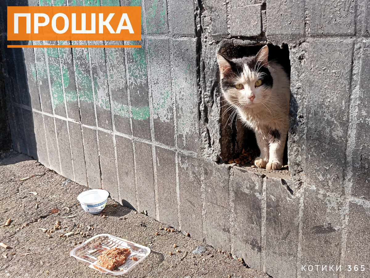 Прошка - подвальный кот. Родился и вырос на улице. Скитался по разным дворам более двух лет. Периодически надолго пропадал с мест кормления.