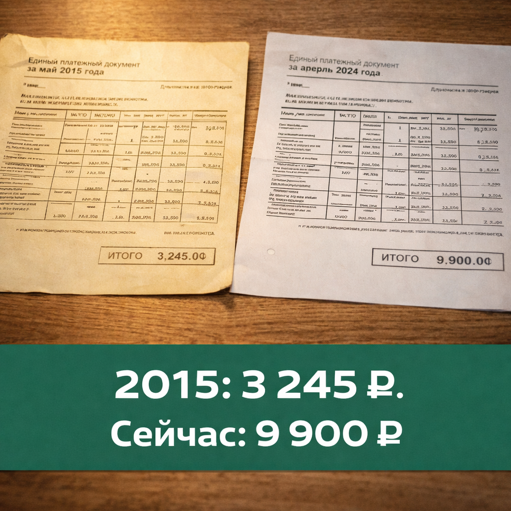 На прошлой неделе разбирала старые бумаги и нашла квитанцию за февраль 2015 года. Двухкомнатная квартира в Екатеринбурге, 54 квадрата. Итоговая сумма — 3 840 рублей. Квитанция за февраль 2026 года на ту же квартиру — 11 270 рублей. Я долго смотрела на эти две бумажки. Потом взяла калькулятор. Потом позвала ChatGPT. Вот что получилось. Сначала просто цифры — без комментариев Холодная вода: было 25 ₽/куб → стало 61 ₽. Рост 144%. Горячая вода: было 92 ₽/куб → стало 247 ₽. Рост 168%. Электричество: было 2,74 ₽/кВт·ч → стало 6,99 ₽. Рост 155%. Инфляция за 10 лет по Росстату — около 97%. ЖКХ выросло в 2,5 раза. Что это значит в рублях Было 3 245 ₽ → стало 9 904 ₽. Три тысячи против десяти. За одну и ту же квартиру с одним и тем же потреблением. Дала ChatGPT обе квитанции — 2015 и 2026 года — и попросила: «Посчитай на сколько процентов выросла каждая строка и сравни с официальной инфляцией». Он добавил интересное: рост тарифов ЖКХ опережает инфляцию по каждой позиции без исключения. И отметил