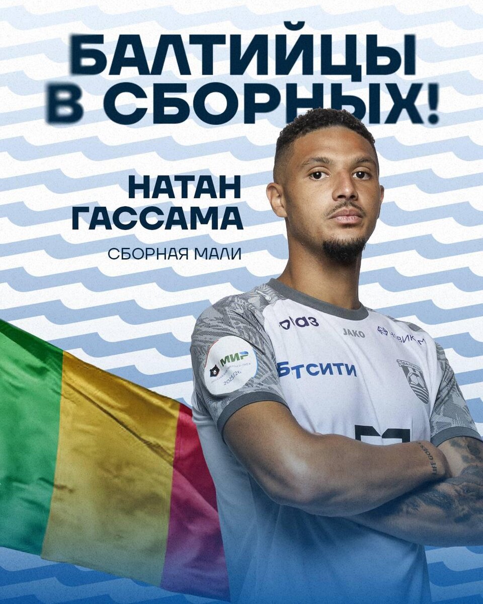 Натан Гассама вызван в расположение национальной команды Мали! Африканская сборная в мартовскую международную паузу проведёт одну встречу. В ней Натан может встретиться сразу с Мингияном Бевеевым, Максом Бориско и Максом Петровым! Россия 🇷🇺 — 🇲🇱 Мали 📆 31 марта; ⏰ 19:00; 🏟️ «Газпром Арена», Санкт-Петербург. С нетерпением ждём матч сборных с Балтийским контекстом 🤗