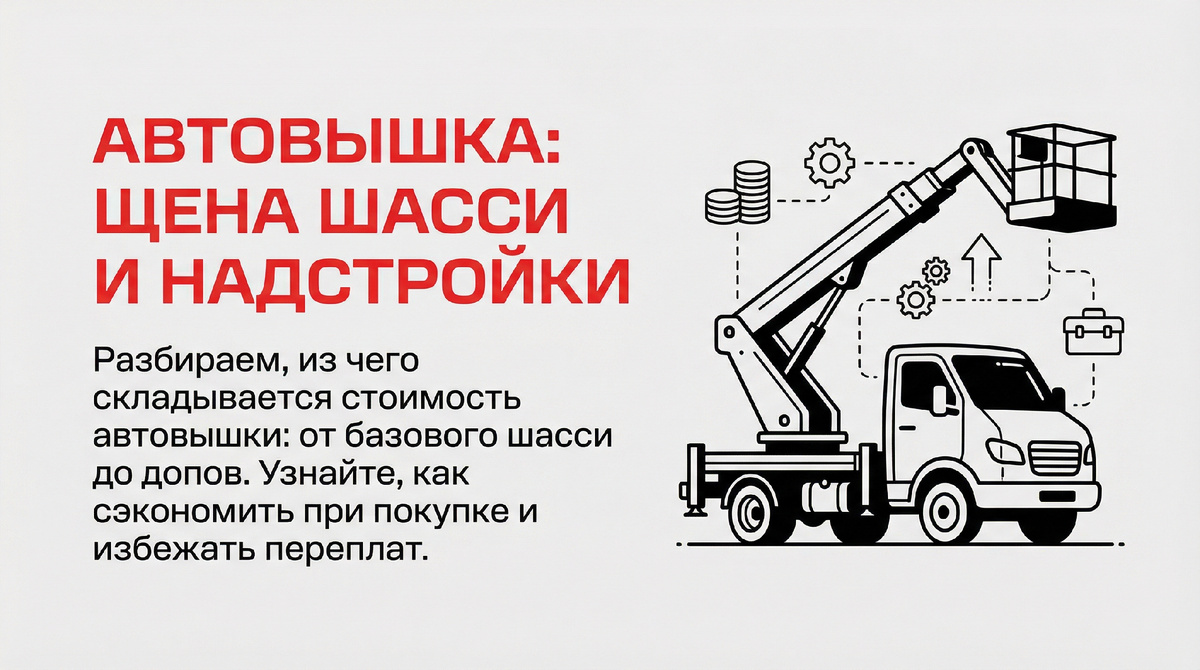 Купить автовышку — задача не из простых. Мы часто видим, как клиенты путаются в ценах: то берут подороже, думая, что это надежнее, то экономят на мелочах и потом жалеют. В этой статье разберем цену автовышек по полочкам: шасси, надстройка, комплектация. Поможем понять, где реальная ценность, а где лишние расходы. Автовышка — это не просто машина с корзиной наверху. Это комбо из грузового шасси (базы от КамАЗа, Урала или импортных аналогов) и специализированной надстройки. Цена складывается из трех слоев: шасси как основа, надстройка как рабочий инструмент и комплектация как опции для комфорта и безопасности. Средняя цена автовышки в России — от 3 до 10 миллионов рублей. Но разброс огромный: от б/у на 20-летнем шасси до новой с гидроподъемом на 30 метров. Шасси — это ходовая часть, двигатель и кабина. Оно занимает 50–70% от общей цены. Почему так? Часто всплывает: экономия на шасси приводит к частым ремонтам. Мы советуем считать не только цену покупки, но и стоимость владения (TCO) — то