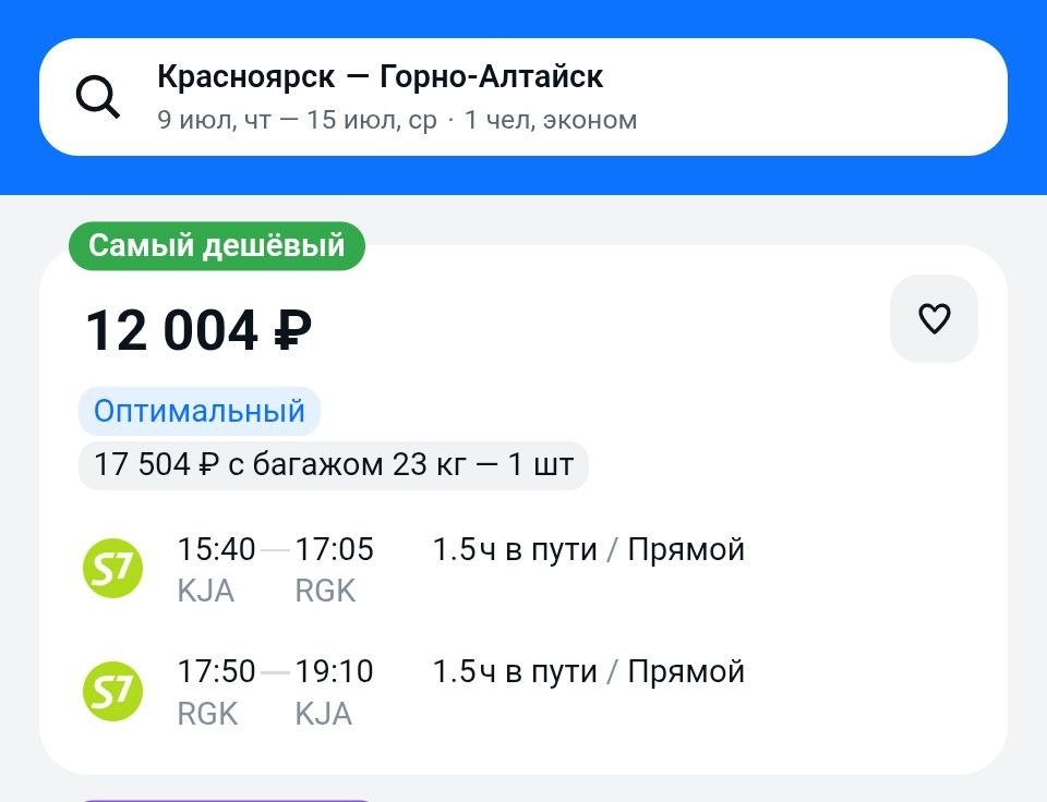 Даже на июль у "Зелёных" имеется Горно-Алтайск за 12к ↔️. Имейте в виду.