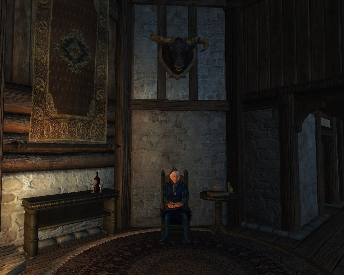 По вечерам привык сидеть в столовой аккурат под прикрепленной к стене головой минотавра. Плохая привычка. Baenlin, a Bosmer living in his house in Bruma, has taken to sitting in the dining room in the evenings, right under the minotaur head mounted to the wall. A bad habit. #Oblivion