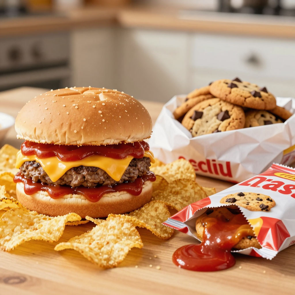 Бургеры, наггетсы, пицца — бомба калорий с трансжирами и солью. Вызывают зависимость и ожирение. Готовьте дома: салаты, гриль.