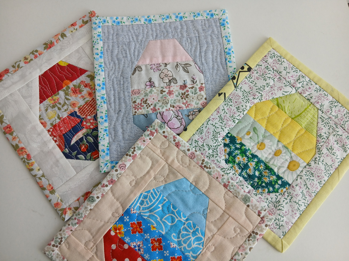 Неужели у меня получилось совсем не похоже на пасхальное яйцо? Такие небольшие лоскутные салфетки я решила сшить для предстоящего праздника Пасхи Христовой. Задумывались они как небольшие подарки или праздничный декор для дома. Нужен был простой, незатейливый, легкий в исполнении лоскутный блок на котором бы изображался символ праздника - яйцо. Куда уже проще? Из четырех полос шириной 4,5см. и длиной 10,5см. сшила прямоугольник 13,5*10,5см. (размеры с учетом припусков). Затем для формирования уголков раскроила из фоновой ткани 2 квадрата 3,5*3,5 см. и два прямоугольника 4*6,5см. и провела стираемыми чернилами в них диагонали. Особенно отмечу, что в прямоугольниках провела разные диагонали (как на фото), если их сделать в одну сторону блок сшить не удастся. Для формирования уголков и придания прямоугольнику очертаний яйца проложила строчки по нарисованным диагоналям. Квадраты расположились в нижних углах, а вот прямоугольники и верхние углы вновь потребовали внимательности. Перед прок