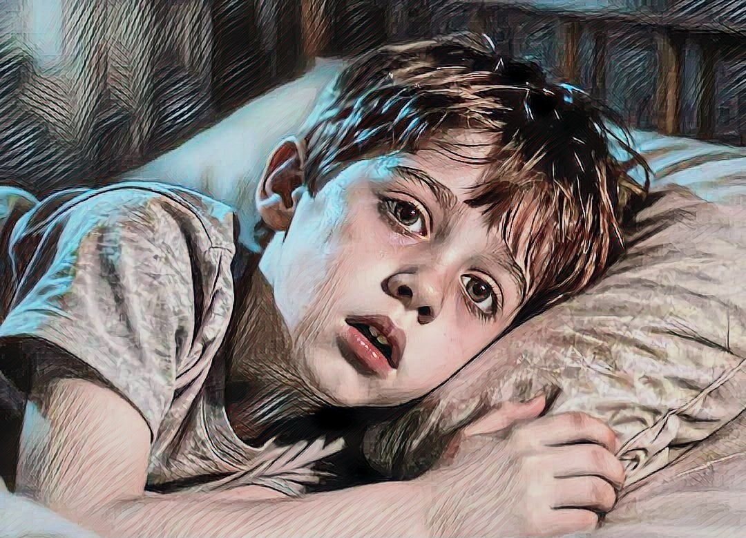 Колька лежал с зажмуренными глазами. Ведь если ты ничего не видишь, значит и тебя не видят. Но не видеть это ещё не всё...Колька что-то услышал. Что-то хруснуло и шмыгнуло в коридорчике. Колька выглянул из под одеяла и увидел какую-то тень. Эта тень шмыгала и покашливала. Колька увидел, что тень эта стала к нему приближаться и превращаться в страшную старуху с длинным носом и красными глазами. Она шарила своими длинными руками по темноте, и шмыгала своим длинным носом. Колька натянул одеяло себе на голову оголив при этом ноги. Он лежал под одеялом с вытаращеными от испуга глазами. О слышал как старуха подошла к его кровати, и стала ощупывать его одеяло, прикасаясь своими костлявыми пальцами.