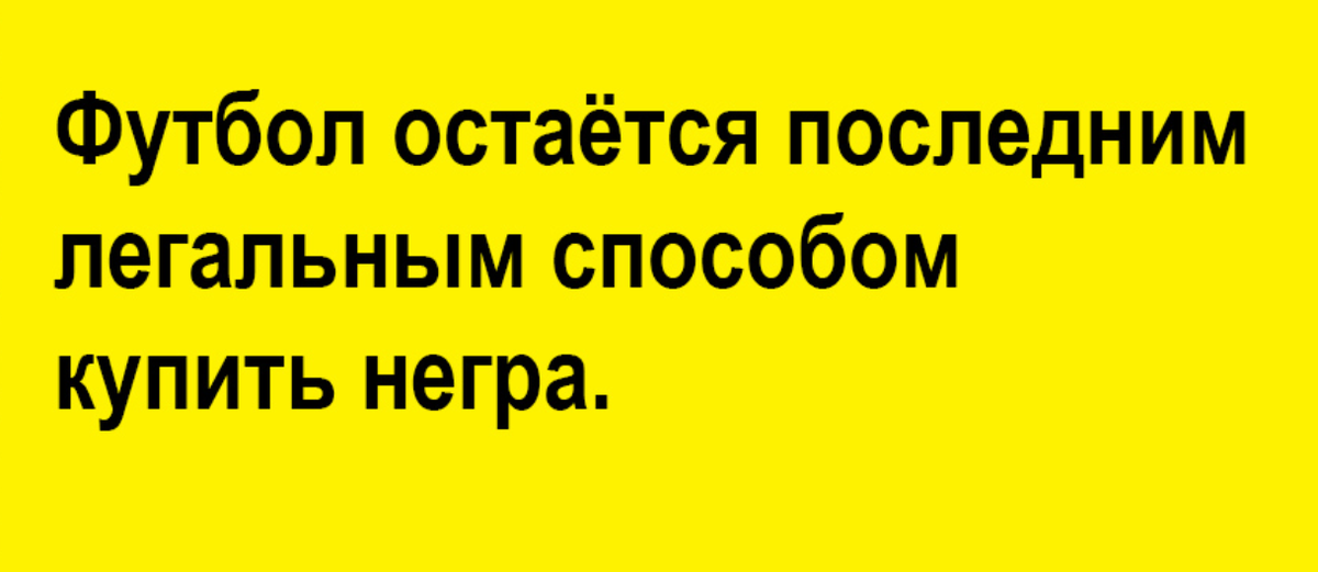 ФК «Манчестер Сити» — $226 млн. *** Сборная России по футболу посетила сиротский приют в Бразилии. «Сердце разрывается, когда видишь их грустные лица без капли надежды», — заявил журналистам шестилетний Жозе. *** Футболисты решили выразить поддержку Дзюбе и в полном составе дрочили весь матч. *** - Видел, как вчера наши шведов отымели?!