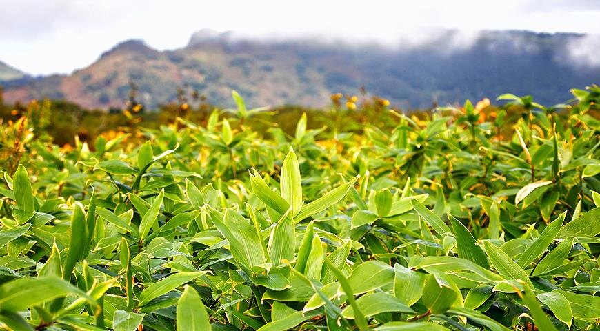 В дальневосточных лесах, там, где суровая природа сочетается с удивительной красотой, растёт удивительное растение — саза, или курильский бамбук. Стоит лишь ступить в чащу на Сахалине или одном из Курильских островов, как взгляд невольно цепляется за густые заросли, напоминающие настоящий бамбук. Но это не экзотический гость из тропиков — это наш, северный бамбук, приспособившийся к непростым условиям. Род саза (Sasa) объединяет древовидные растения с упругими, крепкими и твёрдыми стеблями и длинными корневищами. Именно корневища позволяют сазе образовывать густые заросли — словно живой ковёр, укрывающий землю. Название рода происходит от японского слова «саса» — мелкий бамбук. И правда, внешне эти растения напоминают своего более крупного родственника. Стебли сазы внизу одеты кожистыми чешуями, и только в верхней части несут нормальные листовые пластинки. Колоски с 5–15 цветками собраны в сжатые раскидистые метёлки, которые располагаются на верхушках боковых веточек. Всего насчитывает