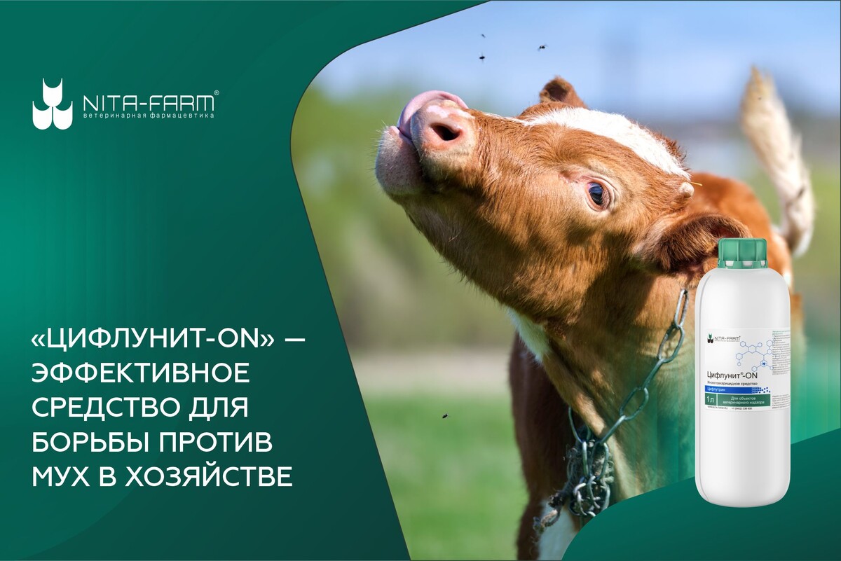 Компания «НИТА-ФАРМ» для этих целей выпускает инсектоакарицидное средство нового поколения «Цифлунит-ON» с широким спектром инсектицидного действия. Основным действующим веществом данного средства является цифлутрин – улучшенный пиретроид нового поколения, вызывающий паралич и гибель насекомых без вреда для организма продуктивных животных.