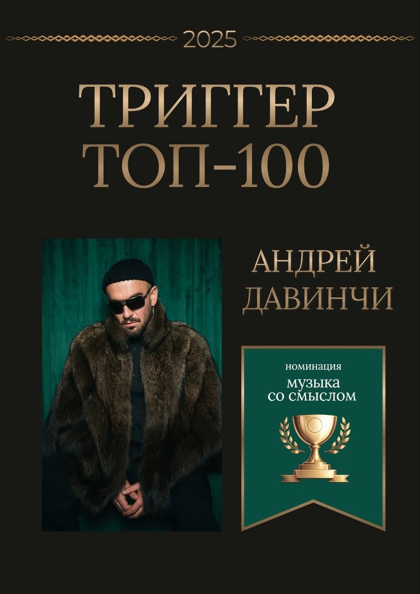 Номинант в категории «Музыка со смыслом 2025». 🎵 Почему именно он? 👇 Потому что для Андрея музыка перестала быть способом нравиться и стала способом говорить. Его путь начался не со сцены как места самовыражения, а с момента, когда он впервые почувствовал ответственность перед залом. В девятом классе, исполняя песню перед сослуживцами, прошедшими Чечню, и вдовами погибших, он понял: голос может соединять людей в общем переживании и вытаскивать наружу то, что обычно проживается молча. ✨Андрей признается: иногда уходят часы на одну строку не потому, что сложно подобрать рифму, а потому что важно не соврать. Мы отмечаем Андрея за то, что он выбрал искренность перед собой и своими слушателями. Его музыка вдохновляет не идеальностью, а правдой. 🎶❤️ Скоро на нашем канале выйдет большая статья, в которой мы расскажем о пути Андрея Давинчи, о том, как он пришел к своему пониманию музыки, и о том, почему сегодня для него важнее не чтобы на него смотрели, а чтобы его услышали.