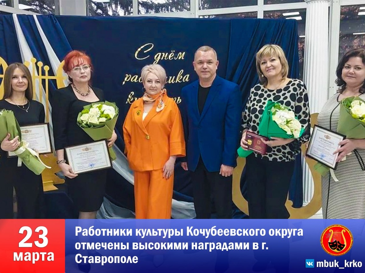 🎭 ⭐️ В преддверии Дня работника культуры, который в России отмечается 25 марта, в краевой столице состоялось торжественное чествование деятелей искусства и просвещения. В праздничной обстановке почетные грамоты, благодарственные письма и медали из рук представителей Правительства и Думы Ставропольского края получили лучшие из лучших, в числе которых — представители сферы культуры Кочубеевского округа. 📣 Заместитель председателя Правительства края Игорь Иванов передал слова поздравления от Губернатора Ставрополья Владимира Владимирова. «Сфера культуры нашего края объединяет более 11 тысяч профессионалов. Вы каждый день открываете новые горизонты для талантливых земляков и поддерживаете искусство. Благодарю вас за этот благородный труд и желаю неиссякаемой энергии и высокого творческого полёта», — подчеркнул в своем обращении глава региона. ⚡️⚡️ Для Отдела культуры Кочубеевского округа участие в таком событии и получение наград регионального уровня — это признание высокого профессио