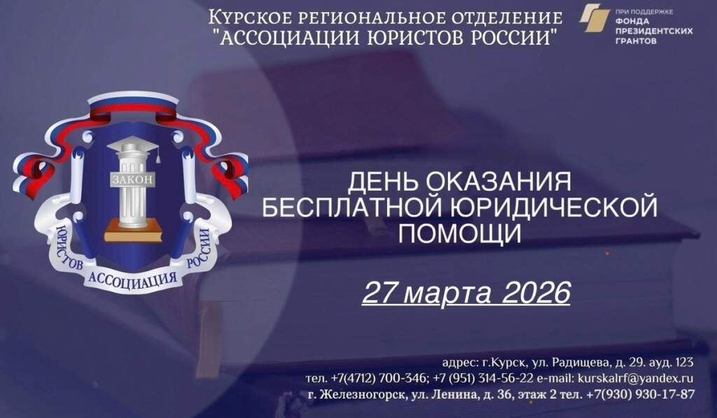 В Курске 27 марта пройдет день оказания бесплатной юридической помощи. Прием граждан проведут специалисты регионального отделения Ассоциации юристов России совместно с сотрудниками областного управления Минюста. Получить правовую консультацию можно будет с 09:00 до 15:00. Специалисты будут ждать горожан на улице Радищева, 29 (1 этаж, аудитория 123). Проект реализуется при поддержке Фонда президентских грантов. Уточнить интересующие подробности куряне могут по телефонам 8 (4712) 70-03-46 и 8-951-314-56-22.