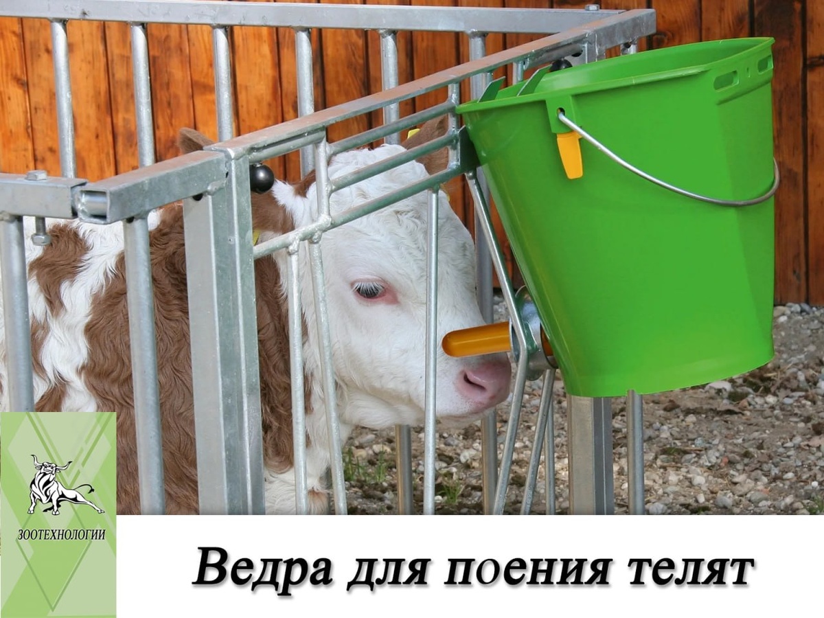 Ведра для поения телят 🐮 Первый месяц выпойки — это старт всей дальнейшей жизни и будущей продуктивности животного. ❓ Почему выпойка из сосковых поилок важна: ✔️ Ведра с соской являются физиологичными для телят, т. к. при поении из таких емкостей теленок выгибает голову (высота соски должна быть на уровне 60 см от пола, не выше, чем вымя у коровы), и питательная жидкость по молочному желобу, образованному из складок рубца, небольшими порциями идет напрямую в сычуг, минуя преджелудки. В ином случае молоко может попадать в недоразвитый рубец, сетку и книжку, где нет пищеварительных ферментов, молоко закисает, и создаются условия для развития патогенной микрофлоры и возникновения диареи; ✔️ Процесс сосания позволяет животному успокоиться и защититься от стресса (отъем от матери, клетка, ограничение в пище); ✔️ Обеспечивается выпойка оптимальной скорости. Теленок должен выпивать литр молока примерно за 2 - 5 минут (из ведра теленок пьет в 15-20 раз быстрее). Молоко должно заглатывать
