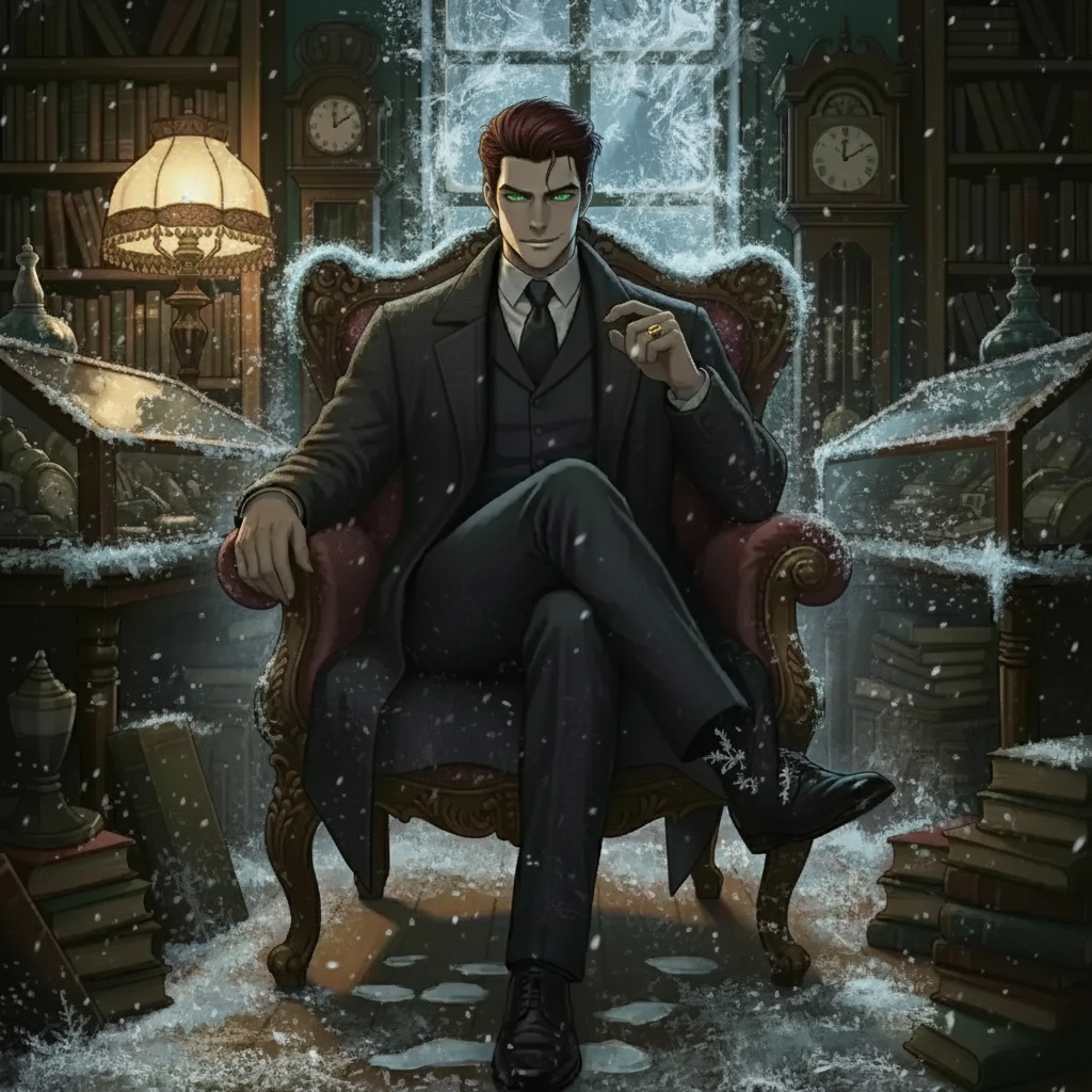 Они оба вздрогнули, резко обернувшись. В глубине помещения, в кресле, которое обычно занимал господин Яков, сидел незнакомец. Высокий, худощавый, стройный, облаченной в идеально сидящий костюм цвета воронова крыла. Каштановые волосы были уложены с небрежной элегантностью. Играя в пальцах тяжелым серебряным перстнем, он наблюдал за ними с холодным, почти скучающим любопытством. Воздух вокруг него леденил кожу.