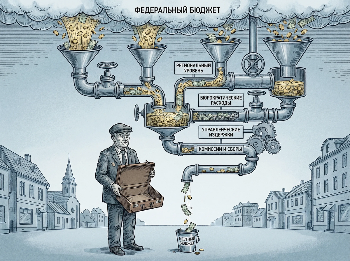 Бюджет малого города одинаков везде не потому, что чиновники одинаково плохо думают. А потому что система стимулов оптимизирует именно такую структуру. Администрация, недофинансированная по всем основным статьям, направляет доступные ресурсы на минимизацию рисков — то есть на текущее содержание обязательных сервисов. Вложить 2 млн рублей в пилотный проект привлечения молодых специалистов — это риск. Потратить 2 млн на ямочный ремонт — это исполнение функции.
