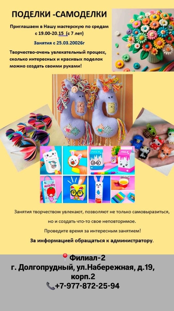 Приглашаем детей в новую творческую группу «ПОДЕЛКИ -САМОДЕЛКИ». 🗓️ Занятия будут проходить по средам с 19:00-20:15 ❗ Первое занятие состоится 25 марта.
