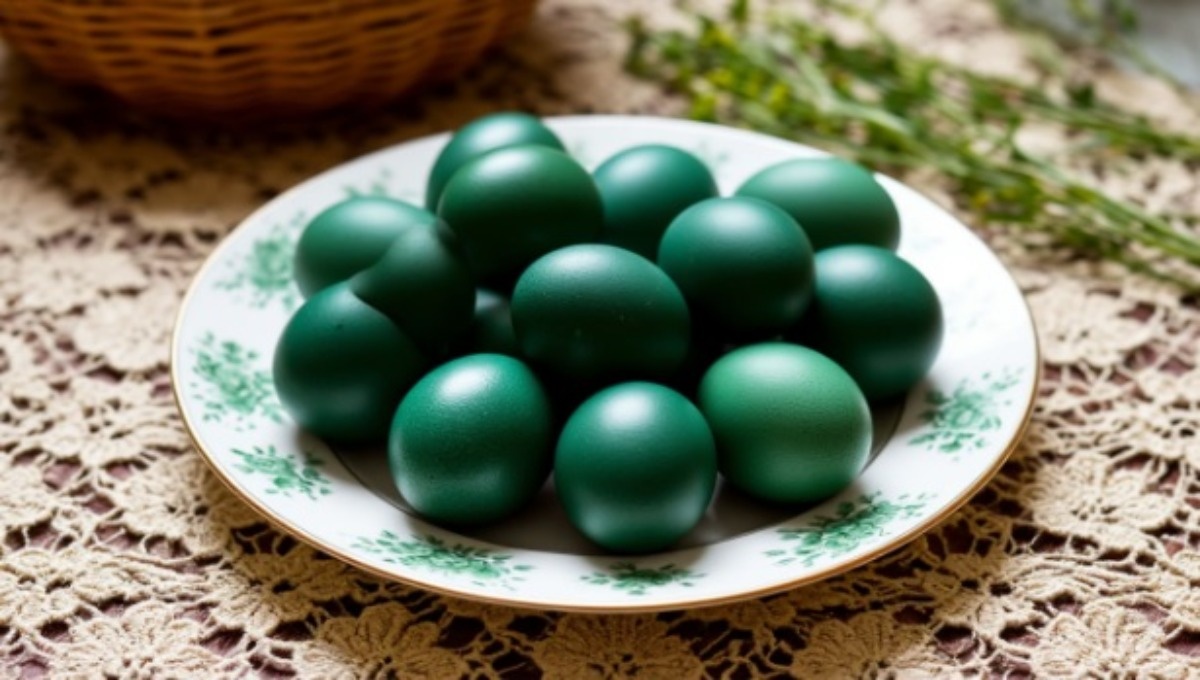 Яйца на пасху в цвете изумруда — эффектно, необычно и натурально