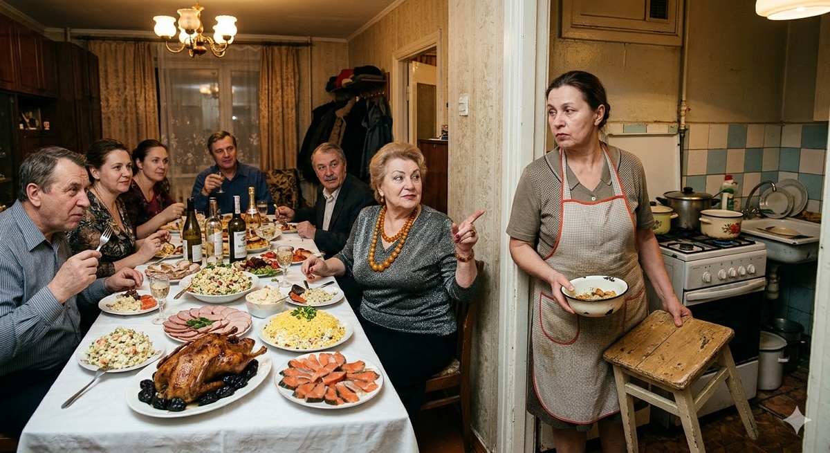 — А кто тебе мешал готовить быстрее и не путаться под ногами? — парировала свекровь, поджав губы. — Родственники приехали, уважаемые люди! А ты кто? Жена. Сегодня жена, завтра, может, и не жена вовсе. А кровная родня — это святое! К тому же, ты свой салат уже попробовала, когда майонезом мазала. Всё, иди, не отсвечивай. И тарелки подавать не забывай, когда позвоню в колокольчик!