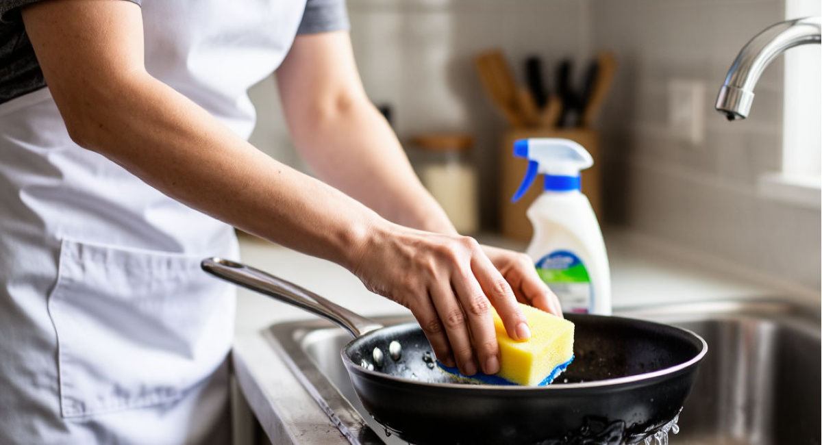 Пригоревший жир, который не отмывается даже жёсткой щёткой, — знакомая проблема? Сковорода, на которой всё липнет, даже если только что налила масло. Покупать новую дорого, а тереть часами нет сил. Оказывается, есть способ, который за пару минут возвращает сковороде идеальное состояние. Мешаю соду и уксус 1 к 1, беру фольгу — и весь жир растворяется мигом. Сковорода больше не липнет, блестит как новая. Комбинация соды и уксуса в паре с алюминиевой фольгой — мощное чистящее средство, которое справляется даже с многолетним нагаром. Фольга действует как мягкий абразив, а химическая реакция соды и уксуса размягчает жир. Сода — мягкая щёлочь, уксус — слабая кислота. При смешивании они вступают в реакцию, выделяя углекислый газ, который разрыхляет пригоревший жир. Алюминиевая фольга благодаря своей структуре работает как деликатный скребок, не царапая поверхность, но эффективно удаляя размягчённые загрязнения. «Я этот способ от бабушки переняла, — рассказывает Елена. — Сковорода была в таком