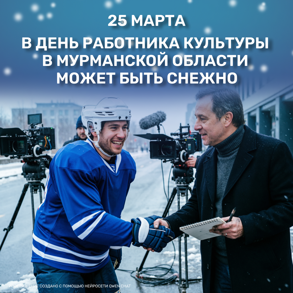 градусов Цельсия Ожидается облачная с прояснениями погода. Ночью небольшой, в отдельных районах умеренный снег, днем также местами небольшие осадки в виде мокрого снега. Ветер юго-западный, южный умеренный, ночью местами сильный. Температура воздуха ночью от 0 до -5 градусов Цельсия, днем от 0 до +5. Гололедица, местами сильная. 👩🎨 25 марта в России отмечают День работника культуры. Дату определил президент России Владимир Путин в 2007 году. Поздравления и благодарность выражают тем, кто связал свою жизнь с вечным и прекрасным – культурой и искусством. Это художники, скульпторы, писатели, кинематографы и театралы, музыканты и сотрудники музеев, библиотек… 🎥 А еще 25 марта - День спортивного кино. Отличный повод, чтобы пересмотреть свои любимые спортивные фильмы или открыть что-то новое. Такие кинокартины вдохновляют и мотивируют. Отметим, что праздник учрежден в 2002 году. Первые современные Олимпийские игры стартовали именно в этот день по юлианскому календарю в 1896 году в Аф
