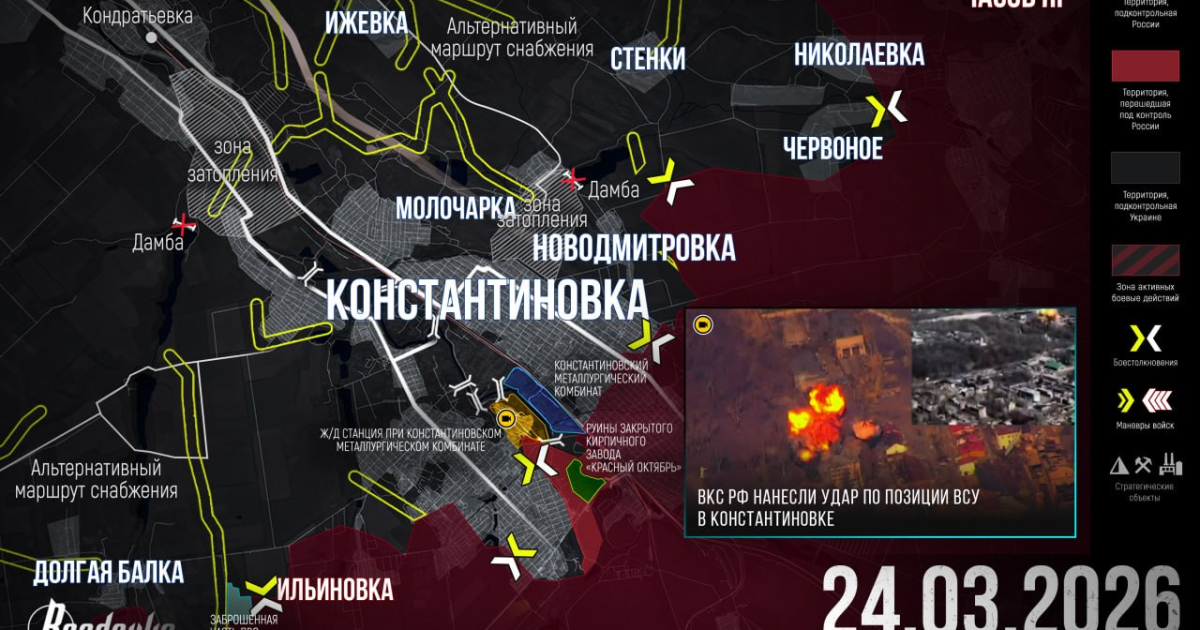 ВС РФ нанесли удар с целью рассечения гарнизона Константиновки – итоговая сводка Readovka за 24 марта