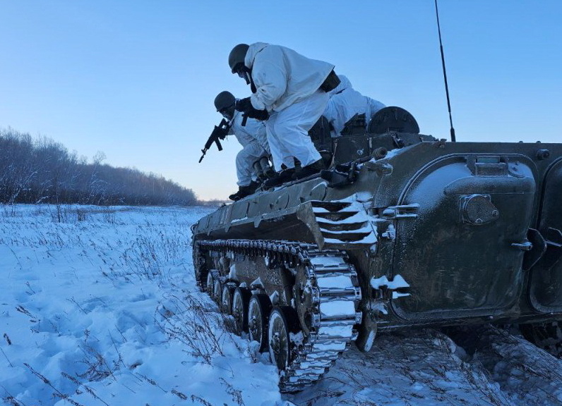 По прибытии в назначенные районы экипажи вывели БМП-2 на кратковременные рубежи, после чего мотострелки выполнили десантирование с бортов с учётом снежного покрова и обледенелых участков. Личный состав быстро рассредоточился, занял укрытия и начал продвижение от машин в сторону района работы «вражеского» расчёта БпЛА.
