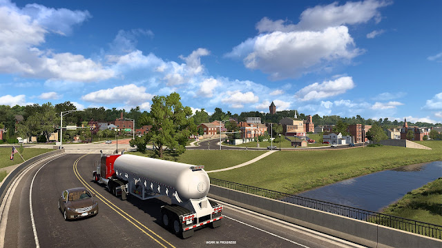 Несколько недель назад мы показали вам первый предварительный обзор небольших городков, которые ждут своего открытия в нашем грядущем дополнении «Иллинойс» для American Truck Simulator. А сегодня мы с радостью приглашаем вас за кулисы, чтобы еще раз взглянуть на то, как наши дизайнеры работают над тем, чтобы оживить эти поселения, и показать вам еще больше таких городков! На северо-западе штата находится очаровательный городок Галена, расположенный среди холмов вдоль реки Галена, притока близлежащей реки Миссисипи. Сегодня Галена славится своей прекрасно сохранившейся архитектурой: более 85 % зданий внесены в Национальный реестр исторических мест. Проезжая по Мейн-стрит, вы словно переноситесь в прошлое: многие здания, стоящие здесь сегодня, были построены в те времена, когда Улисс Грант, 18-й президент США, называл Галену своим домом. Во время прогулки по городу вы увидите несколько примечательных достопримечательностей, в том числе характерную башню местной средней школы, исторически