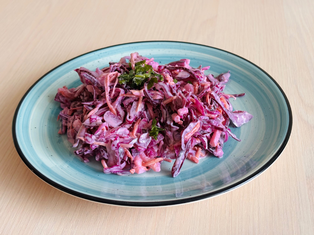 Для приготовления необходимо тонко нашинковать капусту, добавить совсем немного соли и «пожамкать» капусту руками. Так она даст немного сока и станет мягче.
