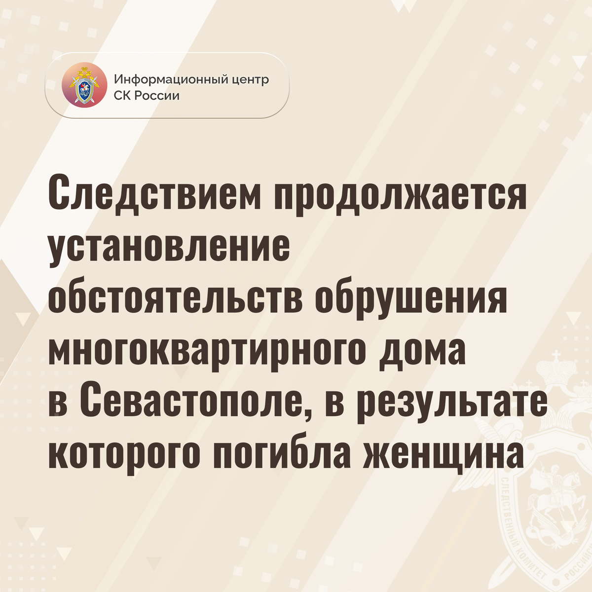 Следствием продолжается установление обстоятельств обрушения многоквартирного дома в Севастополе, в результате которого погибла женщина