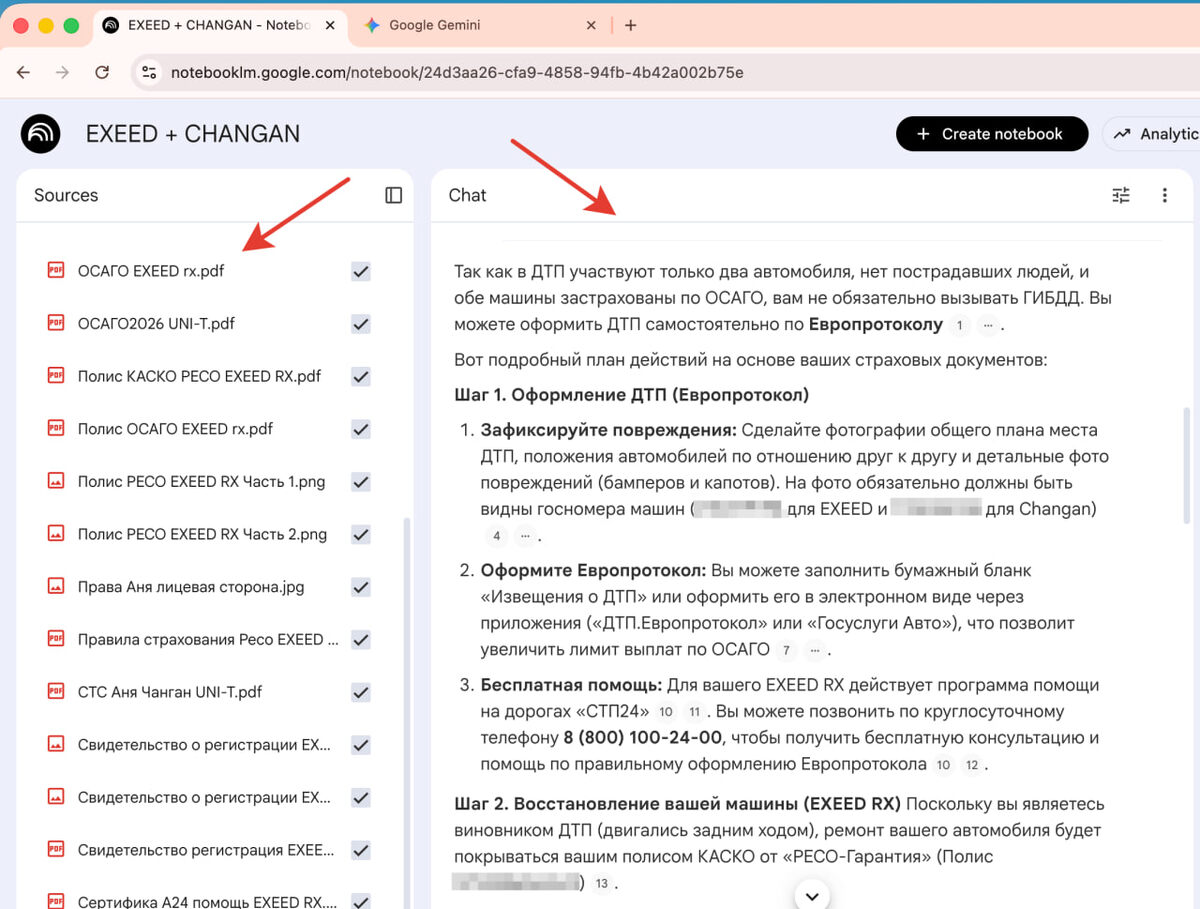 У нас ОСАГО и КАСКО, но думаю - загружу все материалы в Google NotebookLM и спрошу что делать... В общем чудеса - ИИ разобралась, посоветовала план действий, подсказала на что обратить внимание и т.п. Мелочи, но здорово упрощают жизнь в бытовых ситуациях. Подписку покупал тут, а то спрашивают в личку регулярно. 2000 р. на год, а пользы полные штаны :) @clickfraud.ru