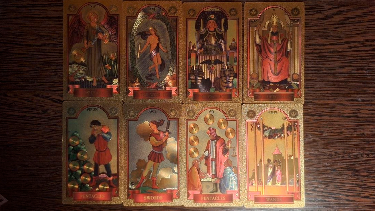 Перед нами сильный и очень многослойный расклад: Умеренность, Мир, Колесница, Иерофант, Семерка Пентаклей, Паж Мечей, Шестерка Пентаклей и Четверка Жезлов. И каждая из этих карт будто по кусочку собирает ту самую правду, которую он скрывал.