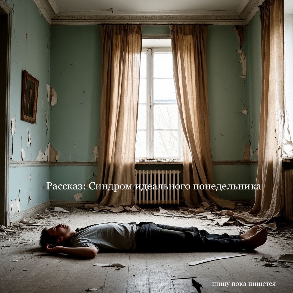 Я лежал на полу своей квартиры. В виске пульсировала боль, рядом валялся злополучный карниз. Шторы, как назло, всё так же висели криво. За окном моросил дождь, и часы показывали 6:30 утра понедельника.