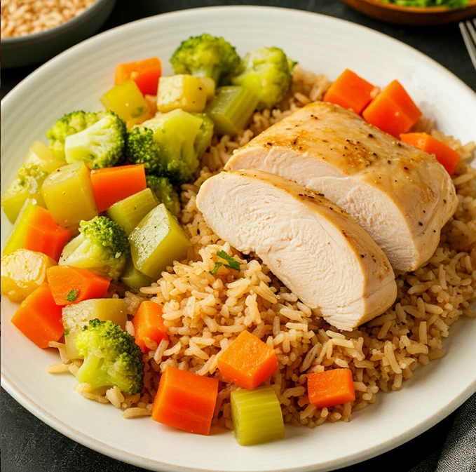 Это блюдо идеально подходит для тех, кто следит за здоровьем и хочет получить полноценный обед без лишних калорий. Приготовление на пару сохраняет максимум полезных веществ, а сочетание белка, углеводов и овощей делает блюдо идеально сбалансированным. Готовится около 30 минут. Для куриного филе:
