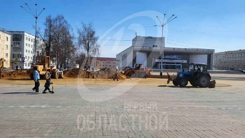 С площади Ленина в Орле вывозят песок, служивший "подушкой" для ледового катка.
