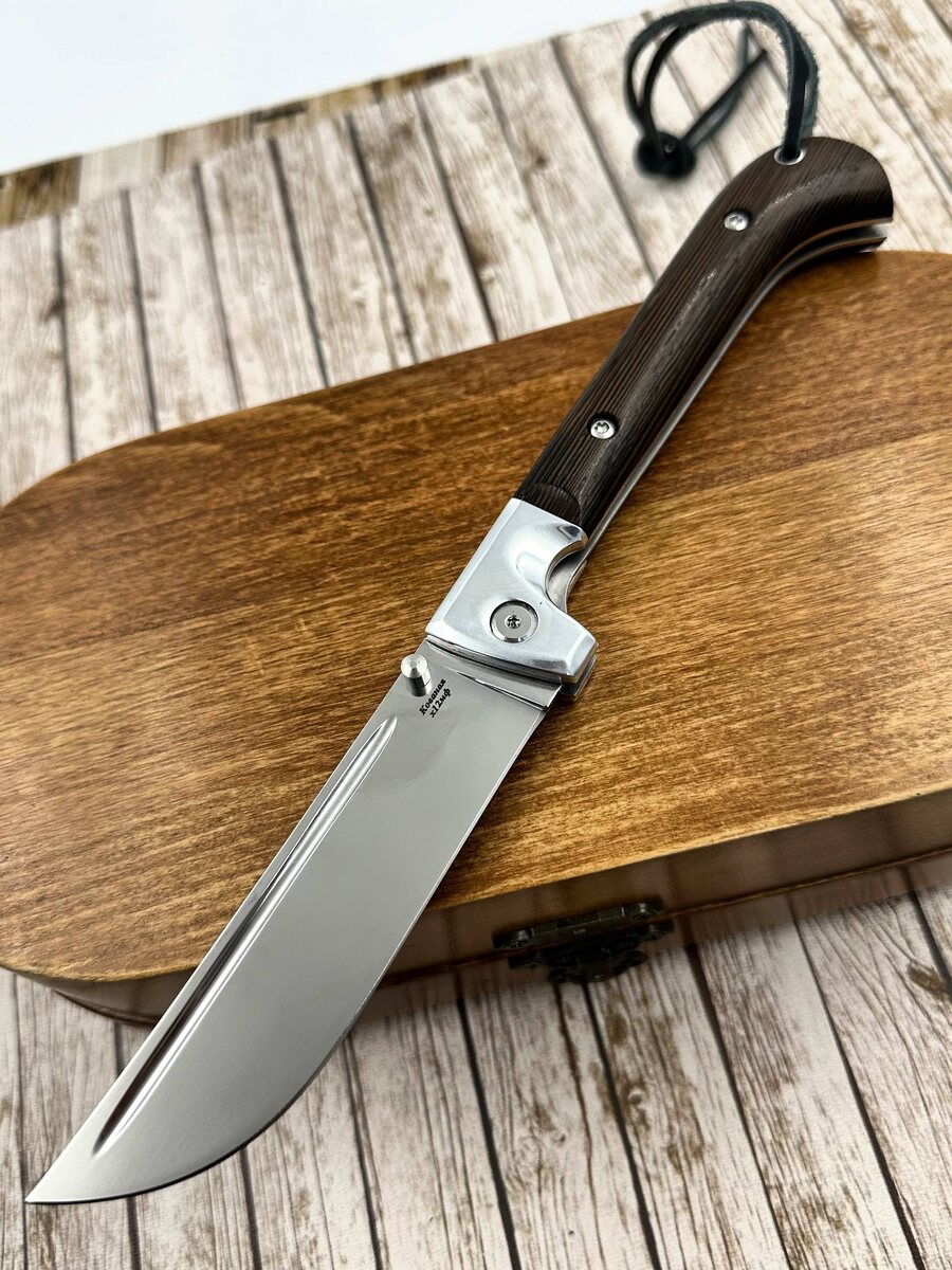 ! 🔪 Лучший выбор для полевой кухни, походов и не только. Почему выбирают наши «Пчаки»: - Инструментальная сталь Х12МФ с криообработкой — отличная стойкость режущей кромки, не боится длительной работы по продуктам и мелким работам в лагере. - Рукояти из африканского венге — благородный внешний вид, приятная текстура, устойчива к влаге и износу. - Твердость клинка HRC 61–62 — идеальный баланс прочности и остроты. - Надёжный замок Liner-lock — удобно пользоваться одной рукой. - В комплекте — ножны из натуральной кожи. - По желанию — формованные ножны (+8000₽). Цена: ~14076₽~ → 13884₽ по акции! Лазерная гравировка: +1200 рублей Ручная заточка: +2000 рублей Пишите для заказа: Telegram: [@Nazarklinokbot](https://t.me/Nazarklinokbot) WhatsApp/Viber: [ +7 910 134-38-31](https://wa.me/79101343831) #пчак #складнойнож #кузницаНазарова #ручнаяработа #нождляполевойкухни #подарокмужчине #х12мф Telegram скоро заблокируют, подпишитесь на наш канал в MAX - подписаться