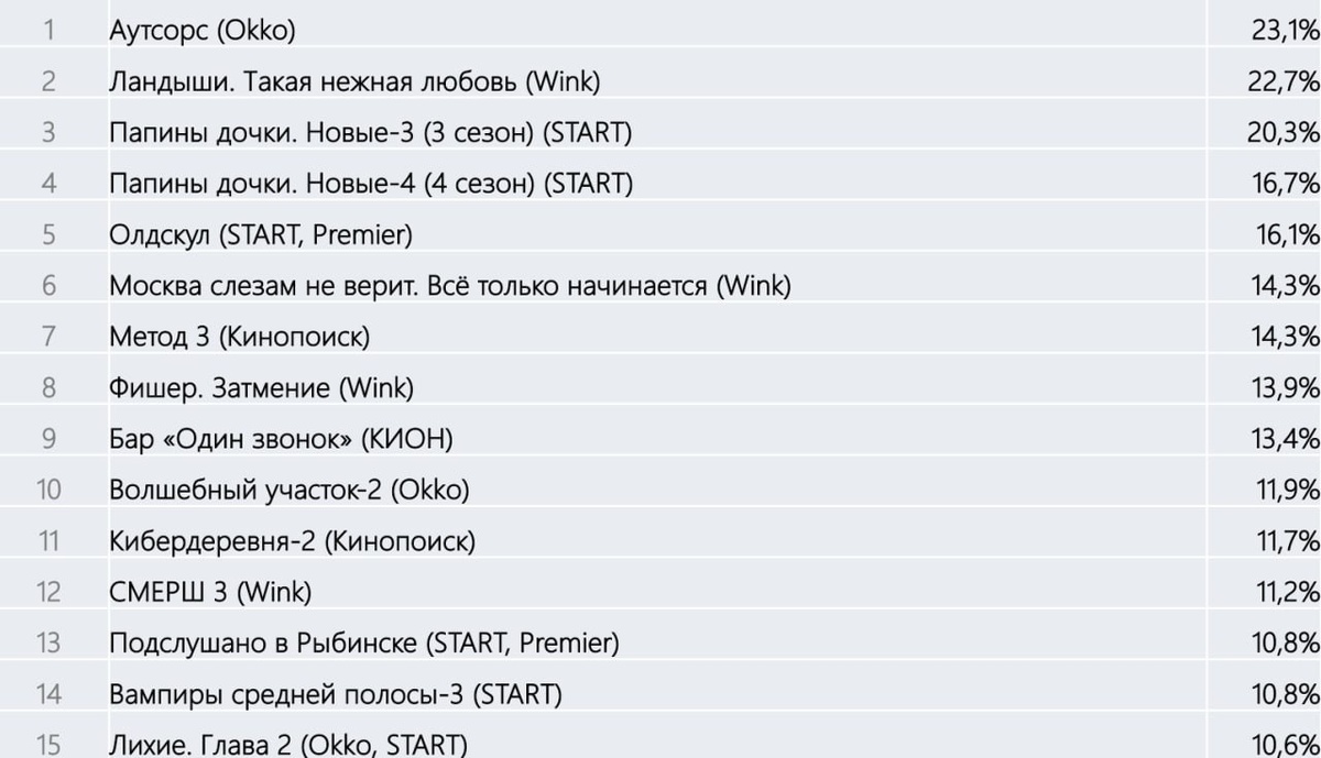 Пока в мировом кино вручают премии за действительные достижения в области кино, у нас, на просторах андреасяновщины тоже бурлит жизнь. Напоминает Страну дураков в «Золотом ключике» Алексея Толстого. Что же, посмотрим на это помоечное «поле чудес». Топ-15 оригинальных российских сериалов-2025, выпущенных онлайн-кинотеатрами. На первом месте вышедшая в «закатные 20-е» - «Аутсорс», чернушная криминальная драма о надзирателях в колонии для смертников в эпоху «лихих 90-х» Душана Глигорова, получившая приз кинокритиков «Белый слон». А вот «Нику» за лучший сериал вчера отдали Кончаловскому за беспомощные «Хроники русской революции». Это, наверное, сделали из жалости как бы за прошлые достижения. Потому что где Кончаловский, а где Первая русская революция. Кончаловский в этом предмете совершенно ничего не понимает и взялся снимать свои убогие фантазии на непонятое им время. Кстати, это единственный сериал из первой пятерки топа, который попал и в топ-5 проектов, досмотренных до конца (2-е мест