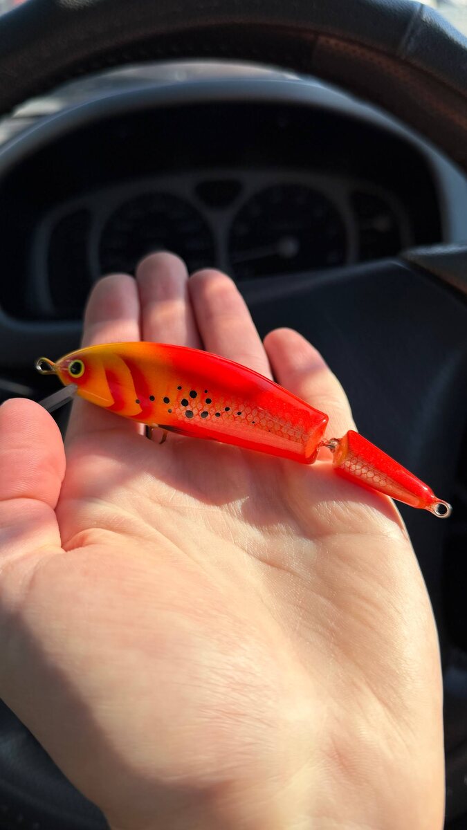 ! 😊 Последнее время хотел себе приобрести воблер ручной работы до 20 грамм на Ленка, его ловлю чаще, чем тайменя. На производственные воблеры наловился уже, хочется именно на такие половить, да и чувствуется, что в них вложили душу, постарались, потратили время и сделали красоту, в общем 🤩 Вот и первый в коллекции, местный мастер Хабаровский делает, кстати, очень качественно! 👍 Сейчас занимаюсь поиском воблеров сербских мастеров, что-то последнее время они тяжело к нам попадаю и стоят соответственно, но ручная работа, тут без вопросов. Если есть, кто занимается таким привозом, напишите в комментариях, буду рад вашей помощи. 🤝