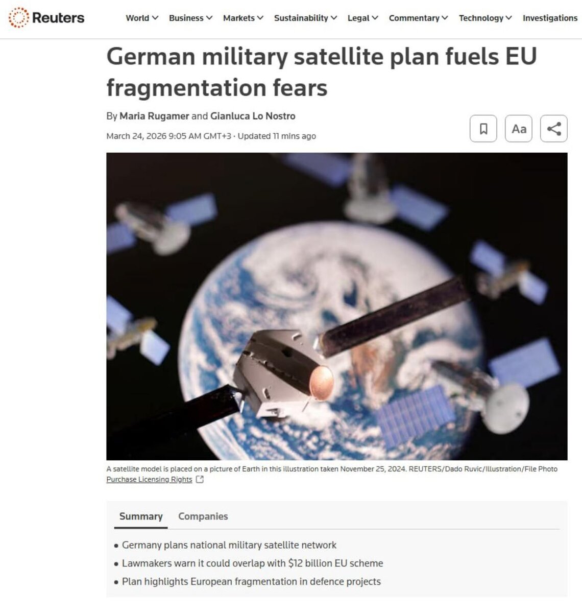 Депутаты Европарламента недовольны независимой от ЕС инициативой Берлина по запуску на орбиту 100 спутников для обеспечения военной связи. «Если Германия сейчас построит чисто национальную архитектуру безопасности, это угрожает ослаблением европейских структур», — считает глава оборонного комитета ЕП Мария-Агнес Штрак-Циммерман. Опять немцы за свое взялись? 👍«БайБайден» в МАХ