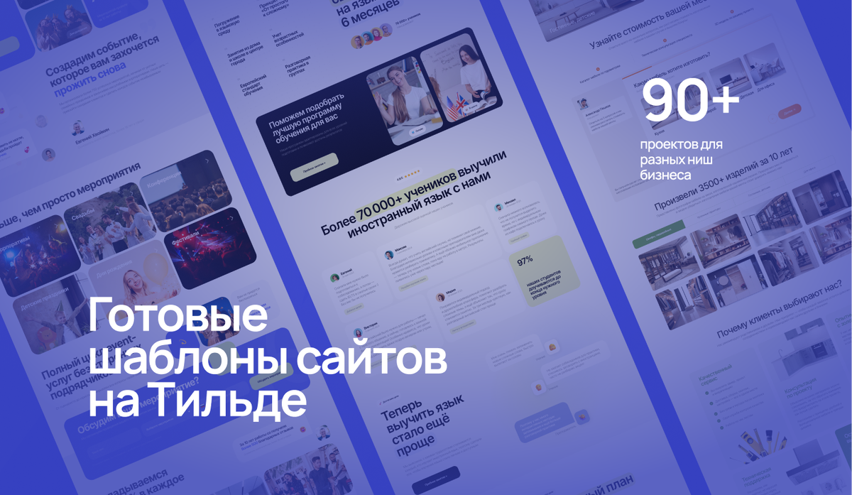 Каталог готовых шаблонов для Тильды — на t-template.shop. Более 90 шаблонов для разных ниш: услуги, интернет-магазины, недвижимость, бьюти, образование, рестораны, мероприятия и портфолио.