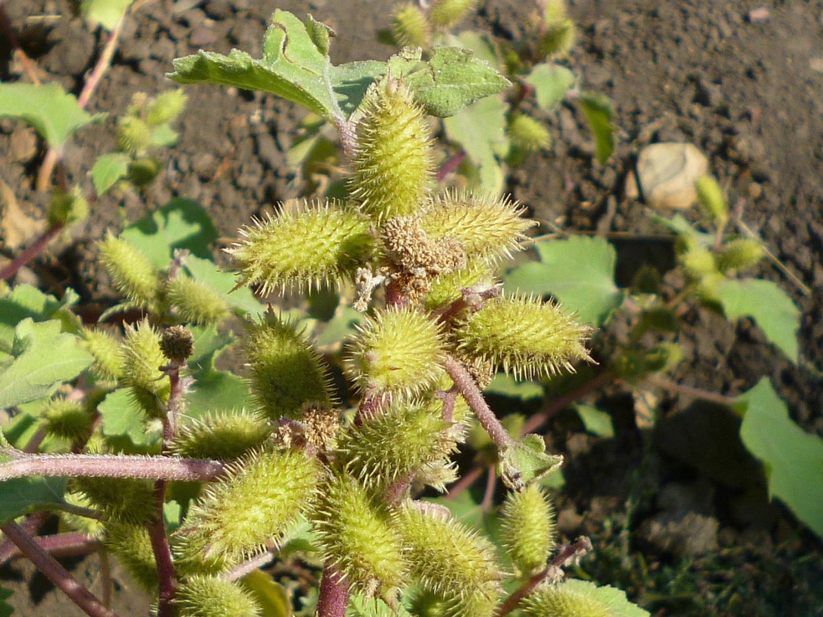 Стебель у дурнишника прямой, покрыт жесткими волосками, высотой до полутора метров. Листья крупные, с зубчатыми краями. Но самая узнаваемая часть - плоды. Это колючие шарики-корзинки, которые созревают к осени. Именно они, а также трава и корни, идут в дело.