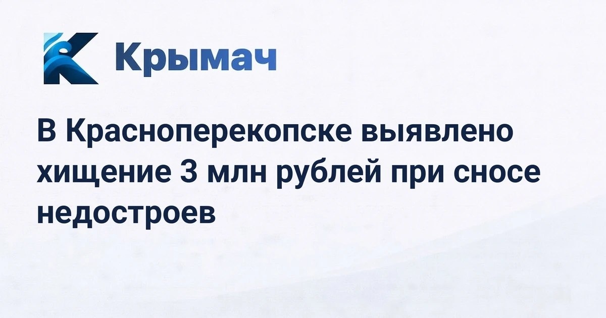 Прокуратура города Красноперекопска инициировала вопрос о возбуждении уголовного дела по факту мошенничества при реализации муниципального контракта. В ходе надзорных мероприятий было установлено, что подрядная организация получила оплату за фактически невыполненные работы по демонтажу объектов незавершенного строительства. Сумма ущерба бюджету городского округа превысила 3 миллиона рублей. https://krymach.ru/news/krasnoperekopsk/v-krasnoperekopske-vyyavleno-hischenie-3-mln-rubley-pri-snose-nedostroev