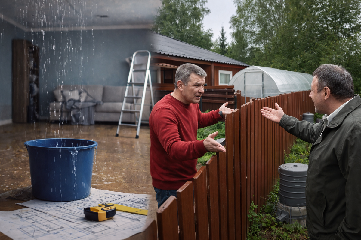 Если убрать громкие и редкие истории, соседские суды в России крутятся вокруг очень понятных вещей. В городских квартирах это залив, перепланировка и шум. На дачах и в СНТ — границы участка, забор, постройки слишком близко к соседу и самозахват земли. Именно такие конфликты подпираются нормами Гражданского кодекса, Жилищного кодекса, земельного законодательства и строительных правил.