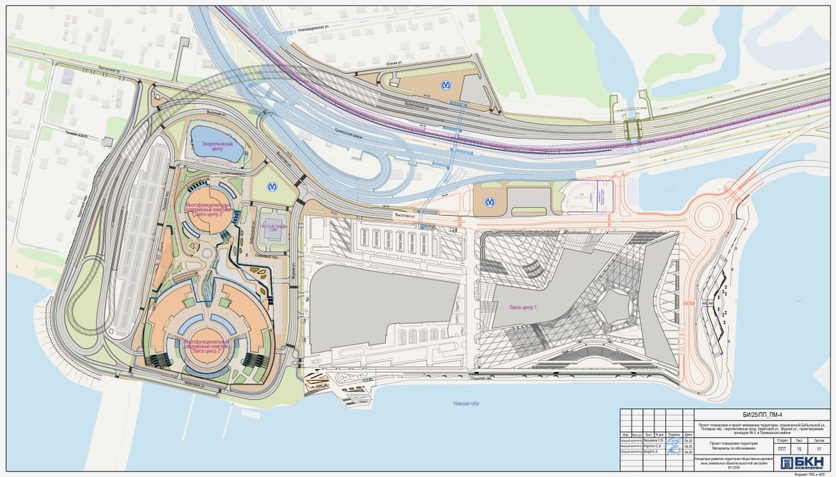 «Лахта Центр 2» и «Лахта Центр 3». Велика вероятность, что после общественных обсуждений будет утверждена именно эта схема. Помимо намеченных дорожных развязок, в материалах фигурируют планы по благоустройству общественных зон. Отображена сеть пешеходных дорожек. Указаны остановки и маршруты общественного транспорта. В документальной части проекта говорится, что подземное сообщение высотного центра с городом будет осуществлено по оранжевой линии метрополитена и через новую станцию «Лахта». Новые дороги и развязки реализуют в два этапа с ориентировочным сроком окончания работ в 2035 году. Энергетический центр появится не позднее 2028 года. По местам расположения главных объектов изменений нет. Высотные характеристики остаются прежними: 555 и 703 метра. После завершения внутренней отделки в башнях смогут одновременно работать более 15000 человек, не считая около 5000 тысяч временных посетителей. Строительство небоскрёбов может стартануть уже этим летом и завершиться в 2033 году. На о