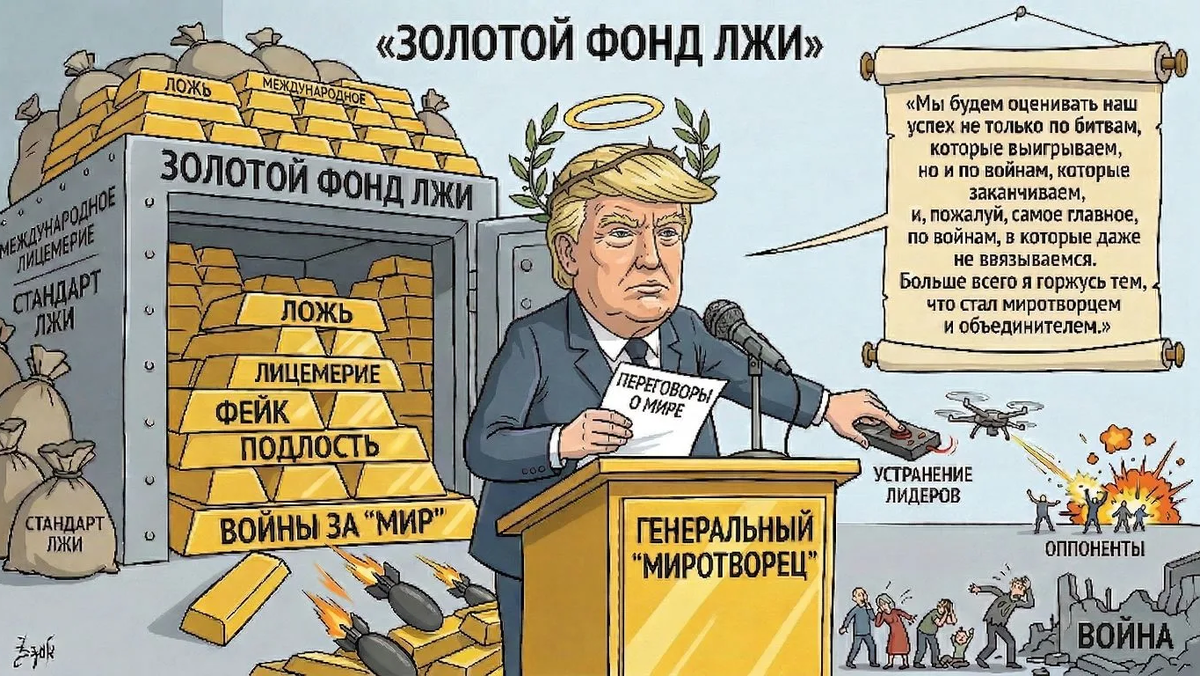 Любителям всего эталонного, если они захотят найти страну, где ложь доведена до уровня золотого стандарта, сделать это будет вообще легко. В мире есть только одна страна, которая под прикрытием переговоров о мире, уничтожает всё руководство тех, с кем идут переговоры. Но, в отдельности такая подлость не могла бы стать золотым стандартом лжи. Поэтому в Аmerican Сonservative напоминают своим читателям предвыборное обещание Трампа, которое возносит лицемерие эпштейновцев на Олимп. Цитирую хитровыделенного дедушку в Аmerican Сonservative: «Мы будем оценивать наш успех не только по битвам, которые выигрываем, но и по войнам, которые заканчиваем, и, пожалуй, самое главное, по войнам, в которые даже не ввязываемся, — заявил Трамп в бесспорно лучшей фразе своей инаугурационной речи в январе прошлого года. — Больше всего я горжусь тем, что стал миротворцем и объединителем». Ну, разве это не золотой фонд лжи?